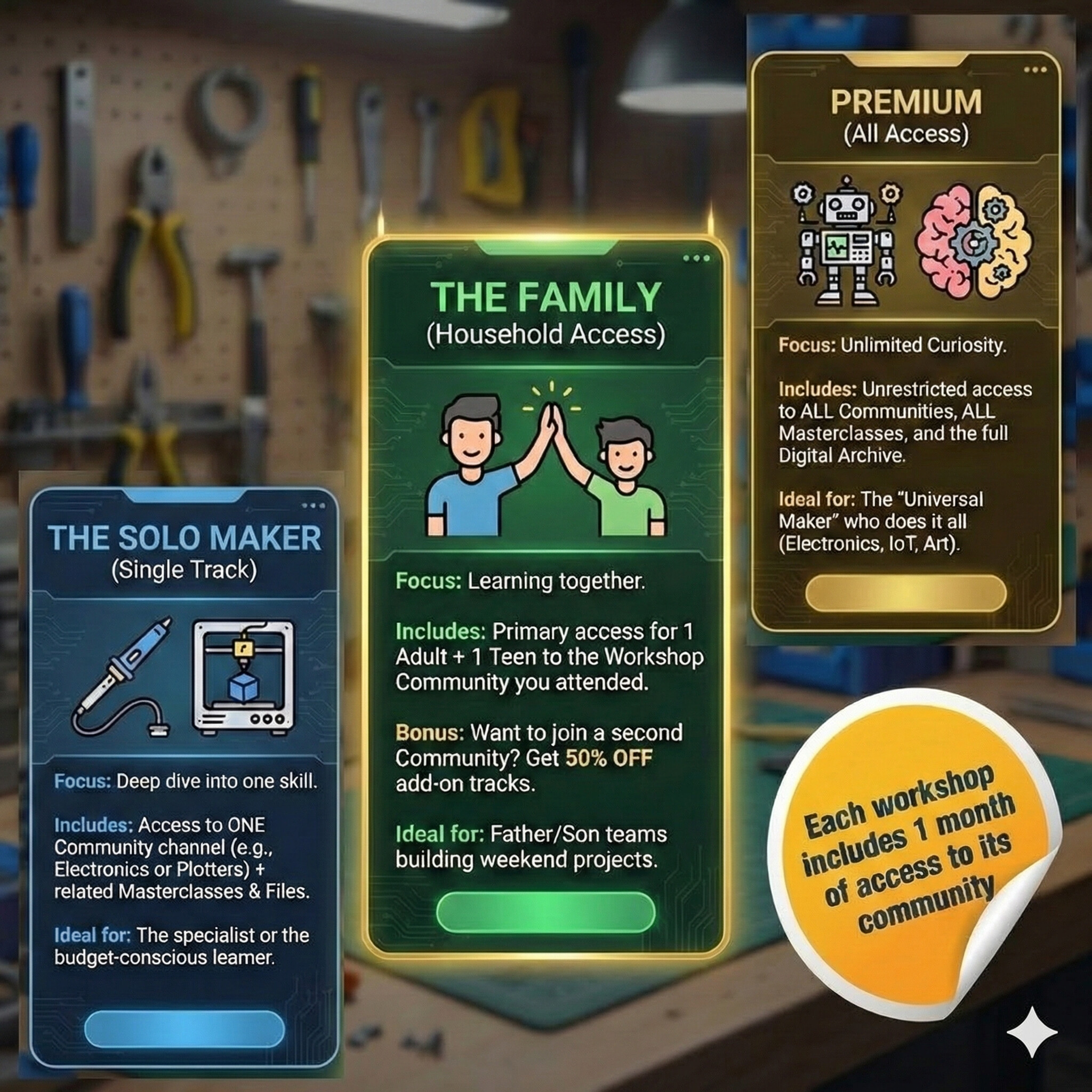 Can you join without attending a workshop? Yes. We provide complete documentation for all hardware used in our workshops. You can source components and build on your own. However, the workshop experience offers advantages that documentation alone cannot: